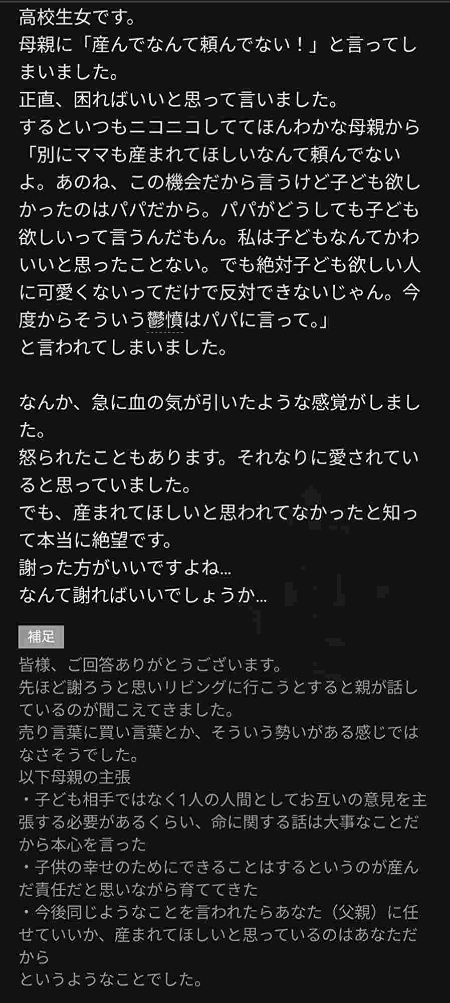 高校生👩「産んでなんで頼んでない!」J( ‘ん`)し「…」結果
