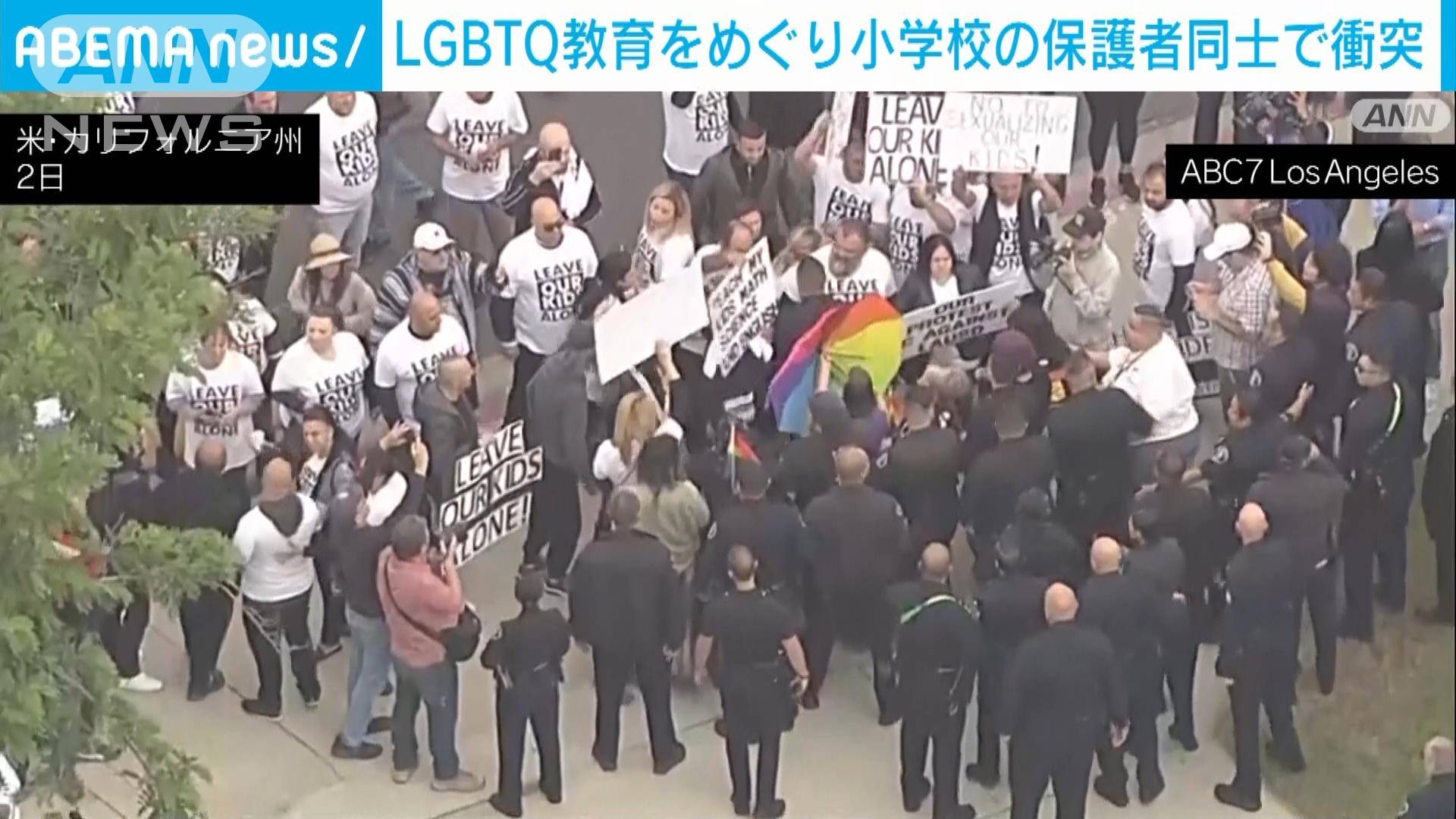 - アメリカ・ロサンゼルスの小学校で、幼いうちからLGBTQへの理解を深めるべきかを巡って保護者が衝突し、警察が出動する事態に発展しました。
