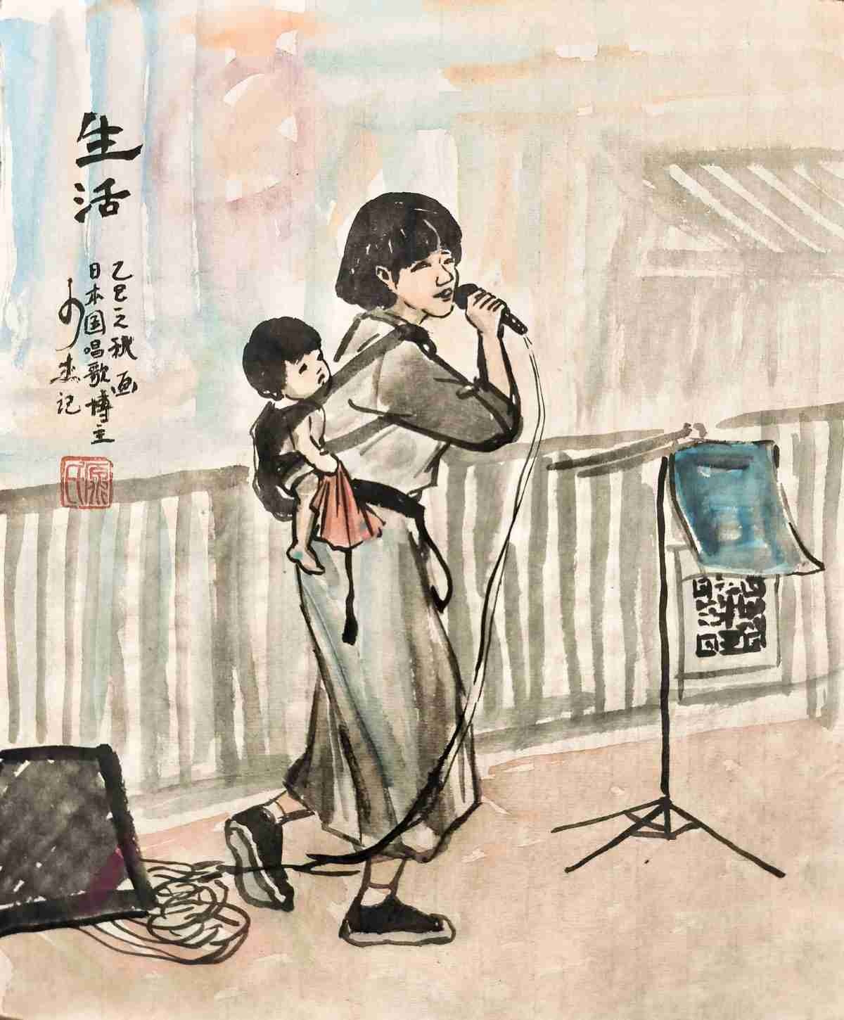 乞食ママが歌で小銭稼ぎなから路上で生活している