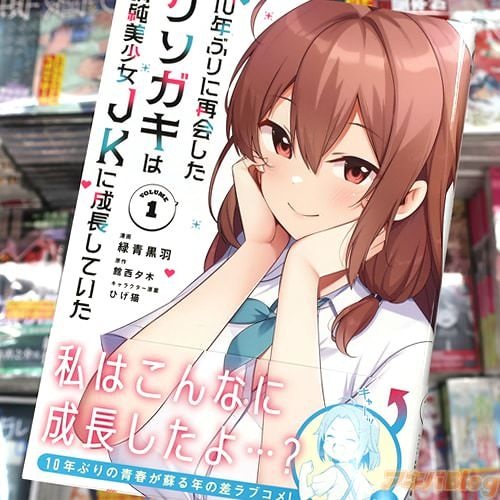 館西夕木氏のライトノベルを緑青黒羽氏がコミカライズされ、コミックガルドで連載されている「10年ぶりに再会したクソガキは清純美少女JKに成長していた」1巻【AA】(キャラクター原案:ひげ猫氏)が、アキバでは22日に発売になった(公式発売日は25日)。