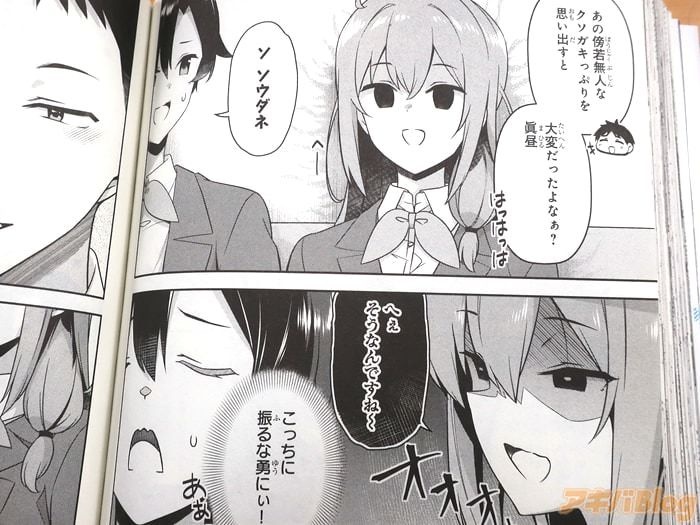 今回始まったコミカライズ「10年ぶりに再会したクソガキは清純美少女JKに成長していた」1巻【AA】には、第1話から第6話と、書き下ろし小説「クソガキを見つけたい」を収録(もくじ)し、折込チラシは『私はこんなに成長したよ…?』で、裏表紙は『元社畜は謎の美少女に翻弄されまくり!?』、オビ謳い文句は『10年ぶりの青春が蘇る年の差ラブコメ!』だった。