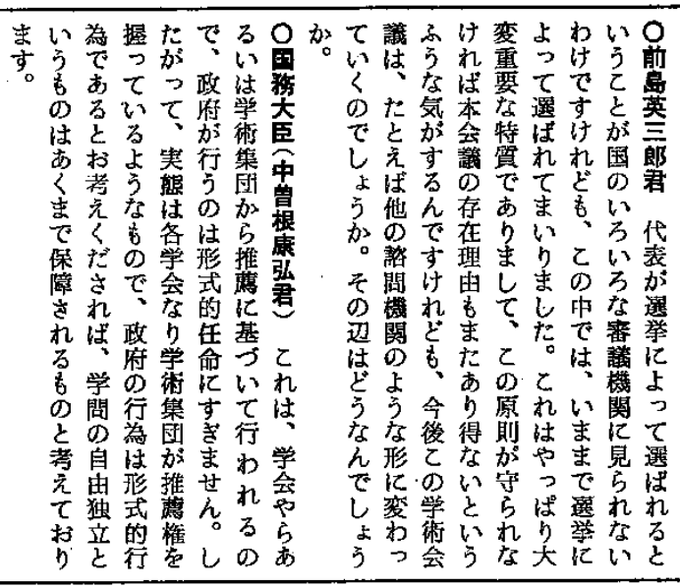 - この時の中曽根の思惑もね、別に学問に貢献しようと思ってこういう答弁をしていたのではないのがポイントでね