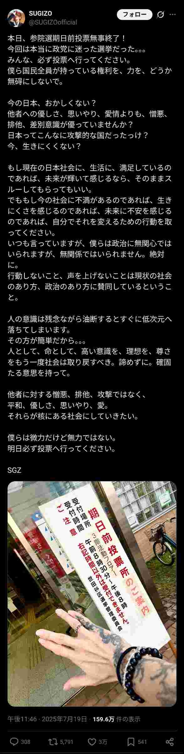 SUGIZOは一貫してマトモってか現役の音楽関係者の中でもピカ一だよね