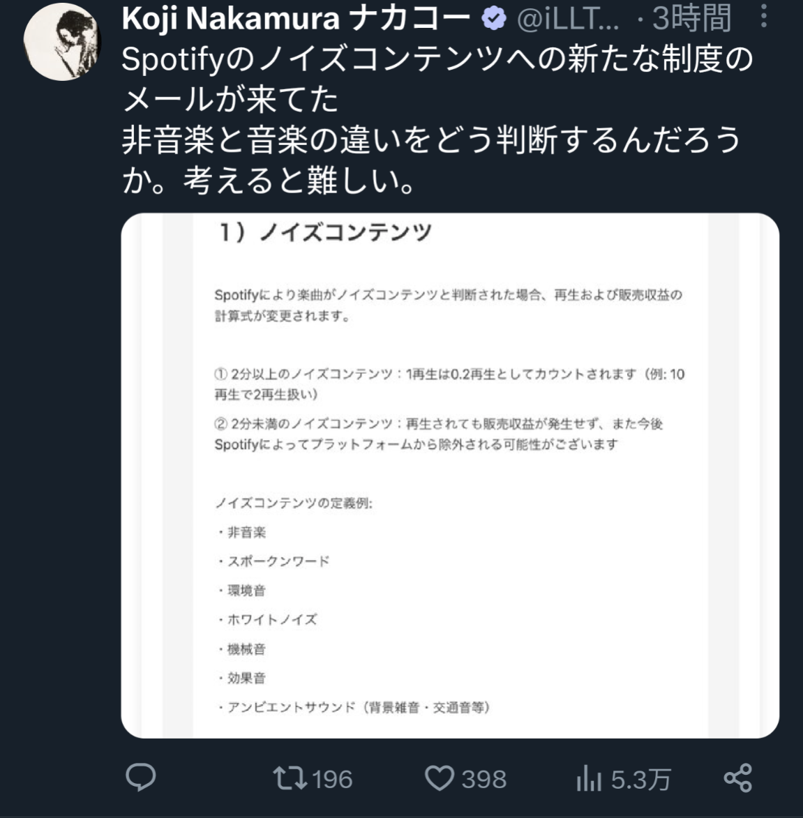 Spotify、実験音楽やノイズ音楽は音楽ではないと閣議決定