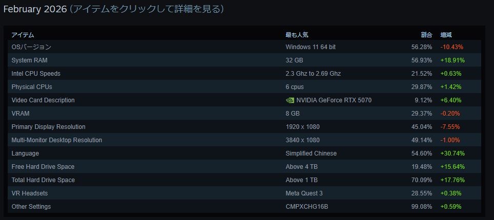 Steamの統計は中国人次第だぞ