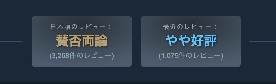 このアップデート後、日本ユーザーの間には波紋が広がった。多くの人気タイトルで、他言語圏が「圧倒的に好評」や「非常に好評」と評価する中、日本語レビューだけが「やや好評」、あるいは「賛否両論」という際立って厳しいスコアを叩き出していたからだ。