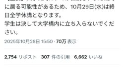 なんG岩手大学さん、構内にクマが出現したため午後全面休講www