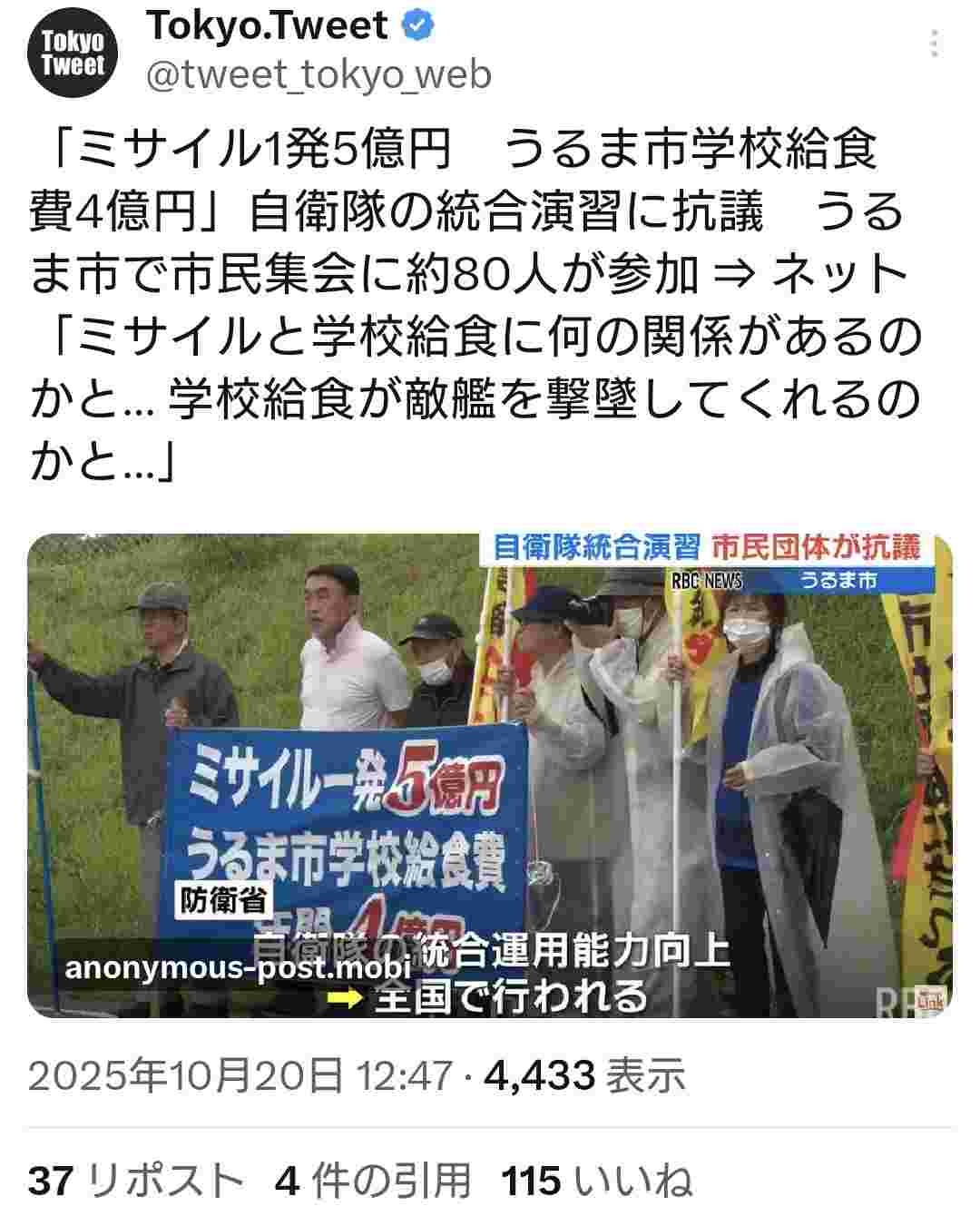 ミサイルをうるま市の税金で買ってるのならわかるが