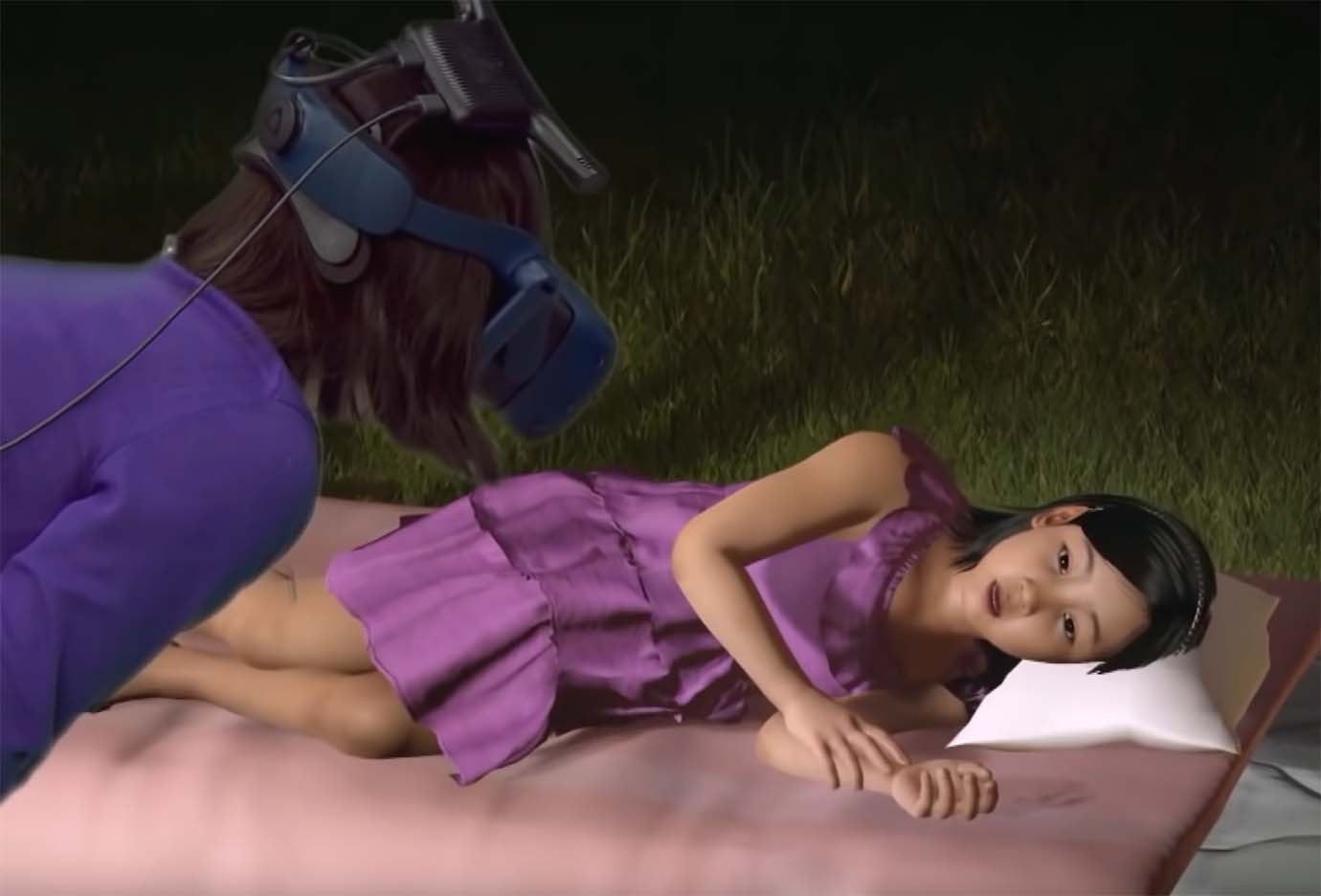 そんな彼女が号泣している理由は、VRで亡くなった娘と再会したからです。