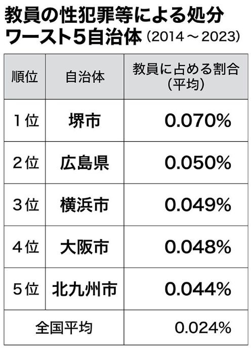 【画像】関西地方の政令指定都市が2つも…“教員の性犯罪”自治体別ワーストランキングを見る