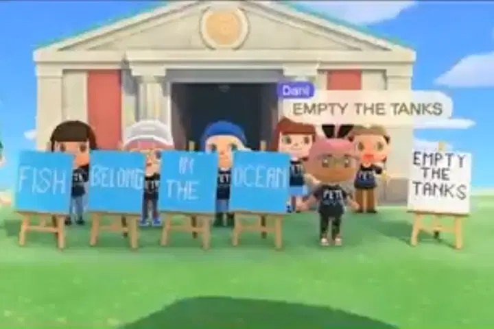 それが「魚を博物館の水槽に閉じ込めるのは残虐行為だ」と抗議しているのだ。実際にPETAはリアルのデモではなく、『あつまれ どうぶつの森』内で博物館の前で抗議デモを行っている。