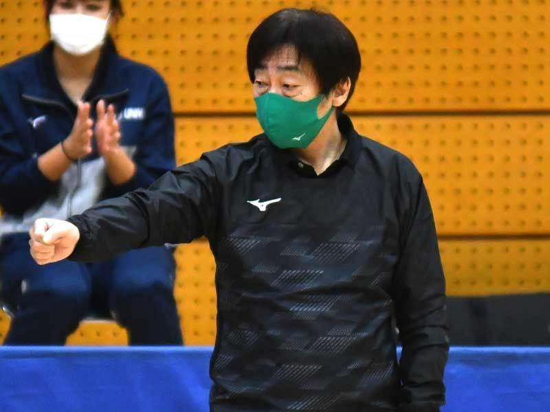 男子バレーボール部を指導する石井顧問教諭=2021年11月、浦安市の明海大