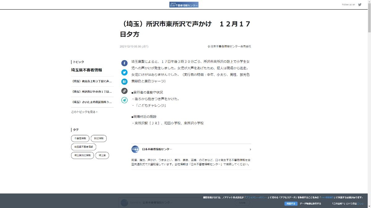 女児にけがはありませんでした。(実行者の特徴:中年、小太り、男性、蛍光色
