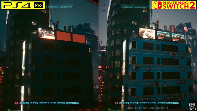 2025年5月21日、海外のYouTubeチャンネル・Cycu1は、『サイバーパンク2077』における、「PS4 Pro」と「ニンテンドースイッチ2」でのそれぞれの環境でのプレイを比較する動画を公開しました。