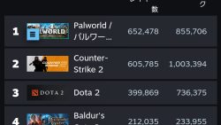 パルワールド同接85万で打止め 惜しくもエルデンリングに届かず