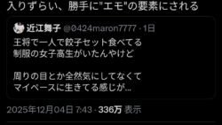 嫌儲オッサン「王将で一人で餃子セット食べてる制服の女子高生がいた。尊い」→制服をエモにすんなと炎上www