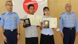 【長崎】高校生アベックの翔天と詩月に感謝状。ベランダで高齢者が倒れているのに気付き飛び移って救助