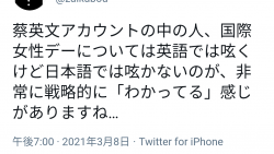 台湾の蔡英文総統「国際女性デーのこと日本語ではつぶやくのやめとこ ジャップは女性差別国家だからつぶやくと叩かれる」
