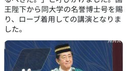 安倍聖帝「マレーシアの大学から”名誉博士号”を賜りローブを着用しての講演でした😤」やっぱり安倍さんだ!