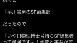 ツイッター「東大博士で早川書房に就職した人がいる」編集者「早川書房にそんな人いません」