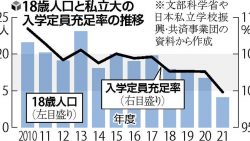 私立大学ほぼ半数が定員割れ、「充足率」初めて100%下回る
