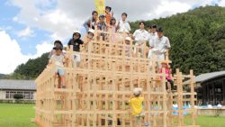 児童向けに木製ジャングルジム手作り挑戦!高校生が作業!