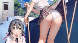 jkさん モップにスカートが引っ掛かり純白のパンティが丸見えに