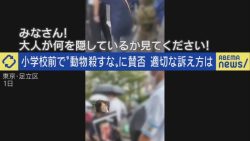 ヴィーガン「これが君たちの食べ物だよ」小学校前に動物のグロ写真を大量設置