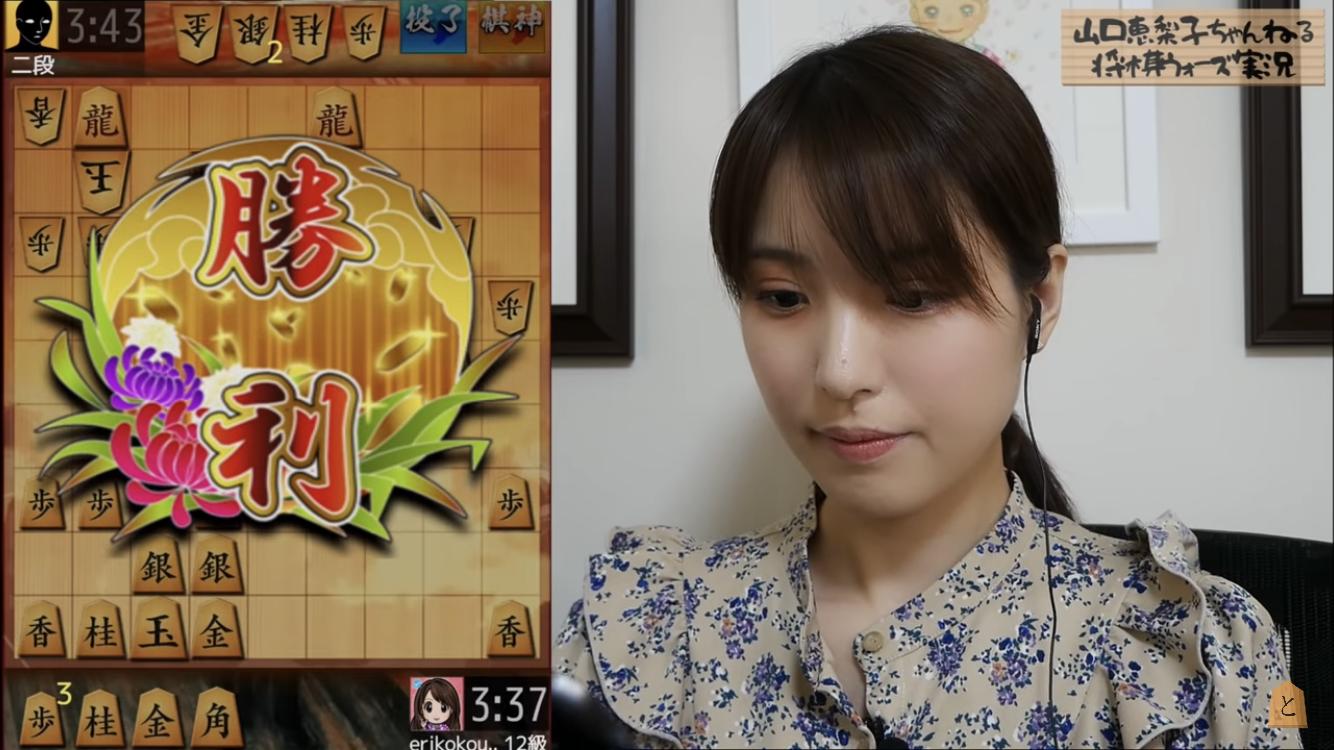 【悲報】女流棋士YouTuberえりりん、本業では勝てず素人をボコボコにしてしまう