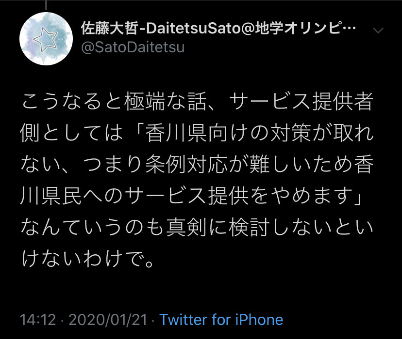ねとらぼが香川県とガチでやり合ってる模様- 19 名前:番組の途中ですが翡翠の名無しがお送りします 投稿日時:2020/05/01(金) 09:19:24.728 ID:1/zdYDAWa