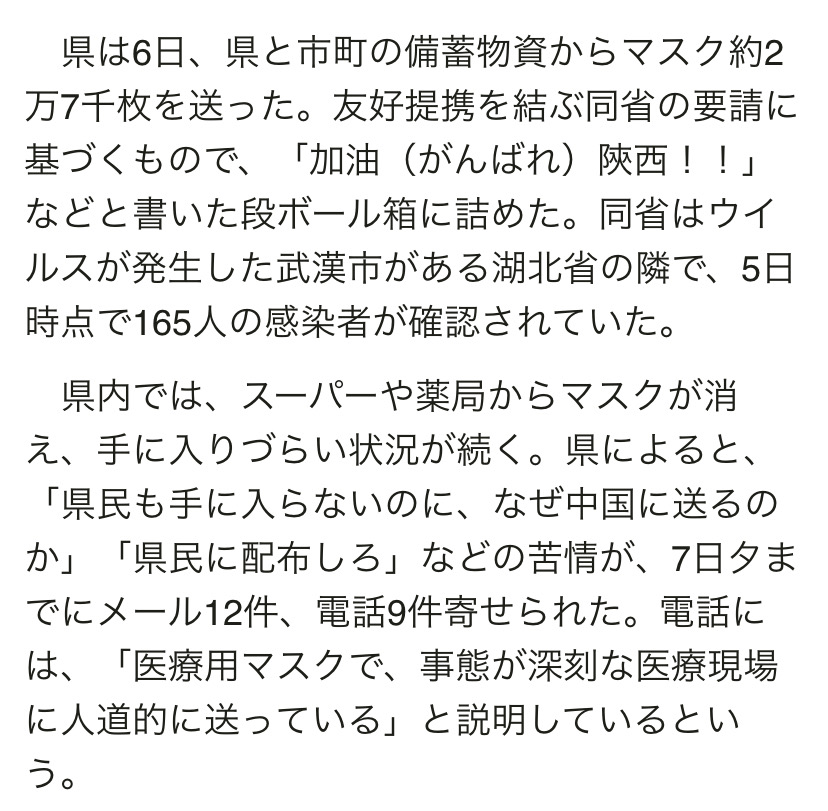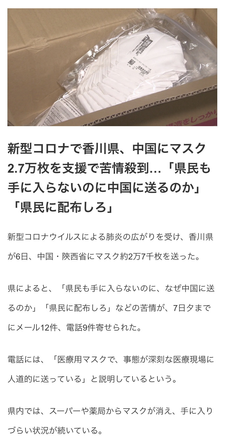 - 香川県のお偉いさんは今回のコロナでマスクを中国に数万送って県民には配らずマスク不足へ …