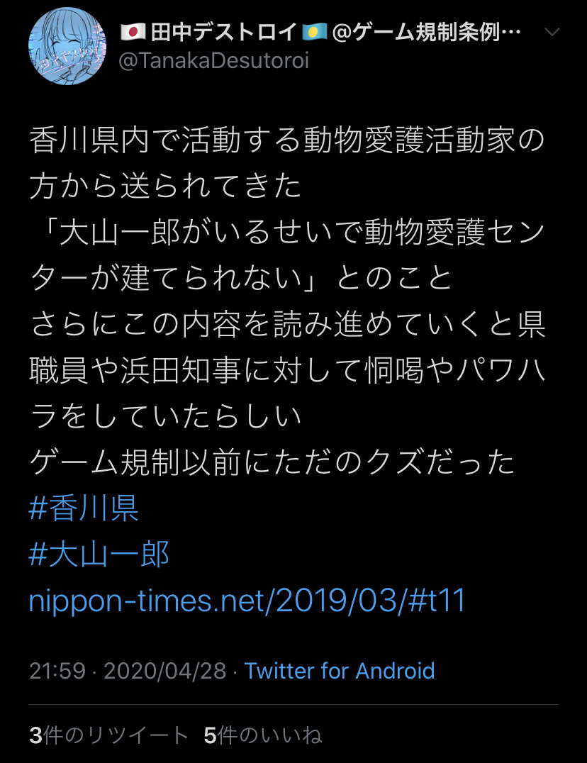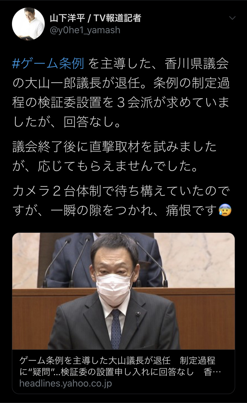 香川県ゲーム規制条例の黒幕の大山、責任逃れの為に退任!wwwwwwwwwwwwwwwwwwwwwwwwwwwwwwwwwwww同じ党の手下に自分の後釜をやらせて