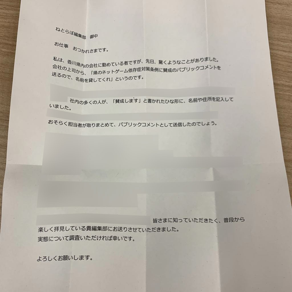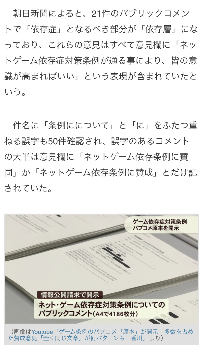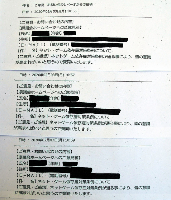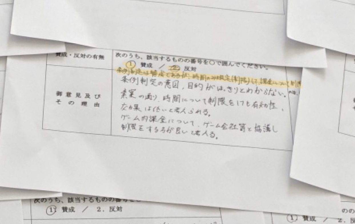 ゲーム1時間条例を通す為に役所のPCから大量に賛成意見コピペ投稿するぞ!!(IP即バレ、誤字コピペだらけ)