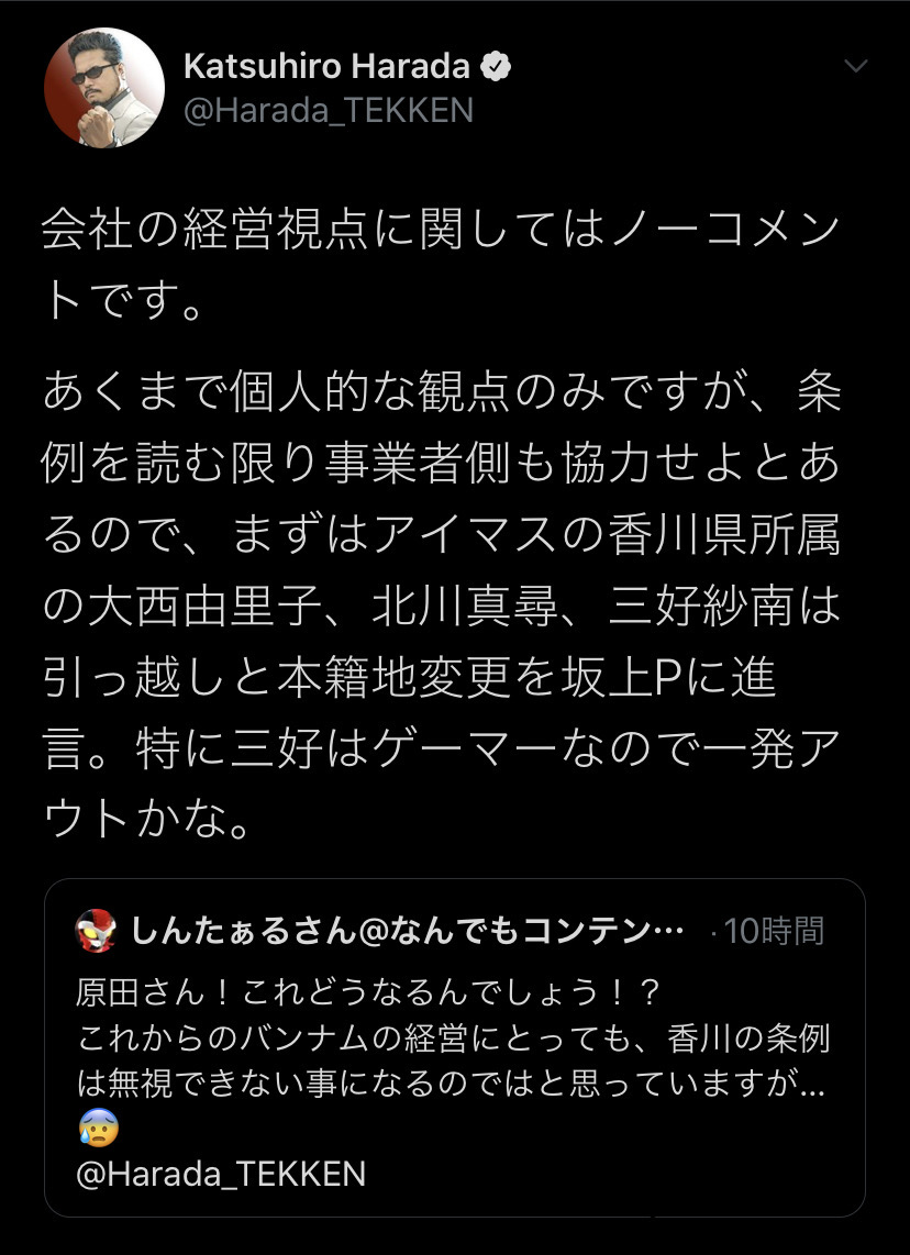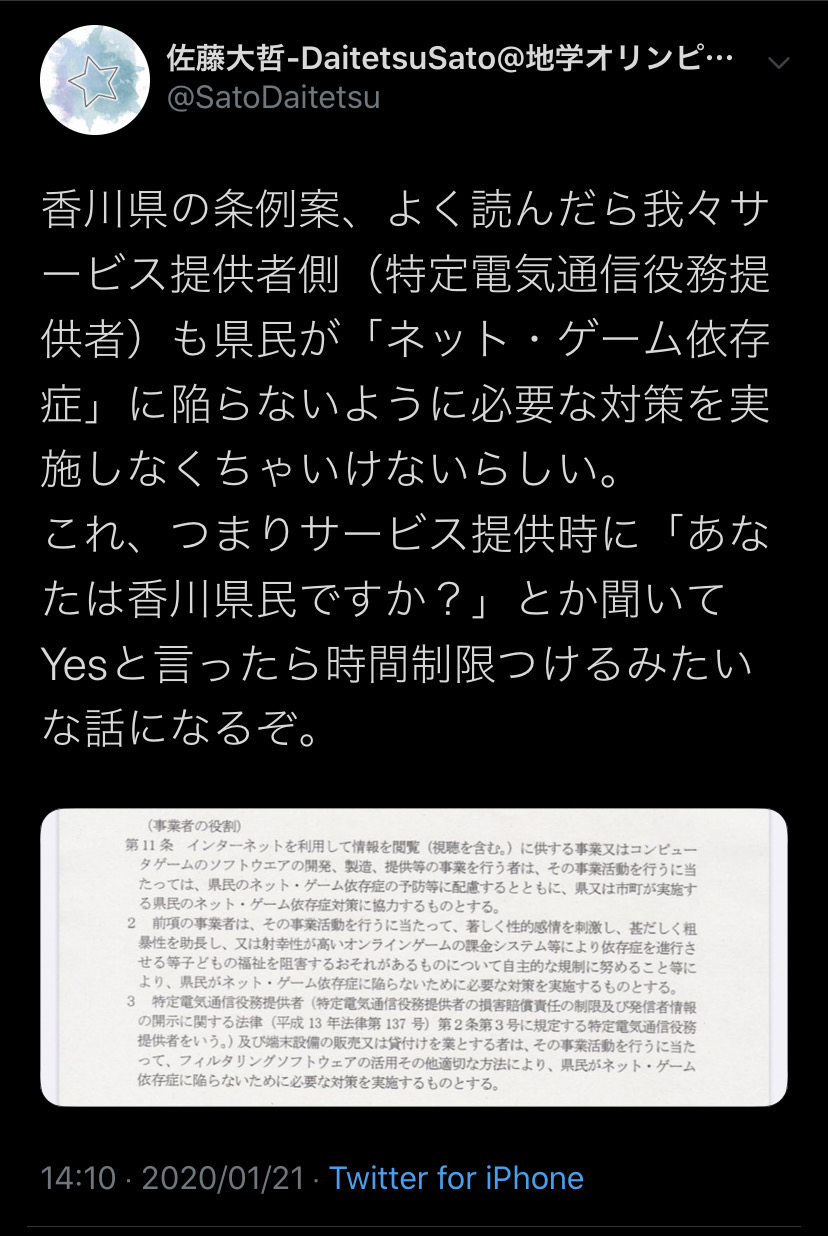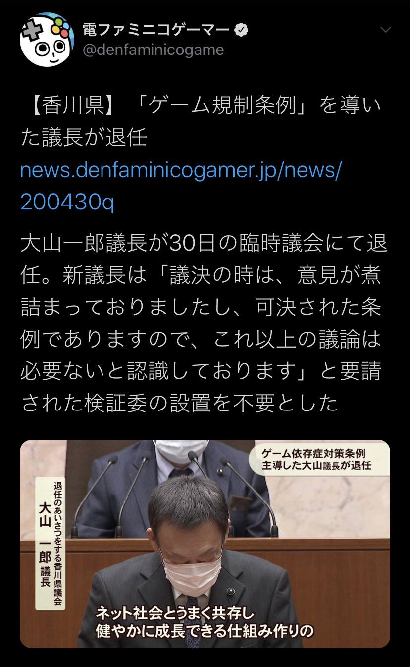 香川県「条例が通ればゲーム会社も協力しろ!」- 6 名前:番組の途中ですが翡翠の名無しがお送りします 投稿日時:2020/05/01(金) 09:16:45.871 ID:1/zdYDAWa
