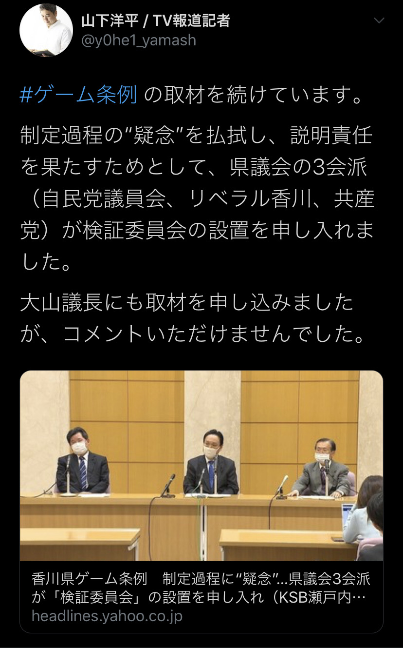「ゲーム規制条例は議論されまくったから条例を覆さない!!」と言わせて