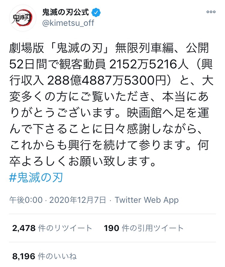 - 鬼滅には日本史上最強の映画になってほしいわ