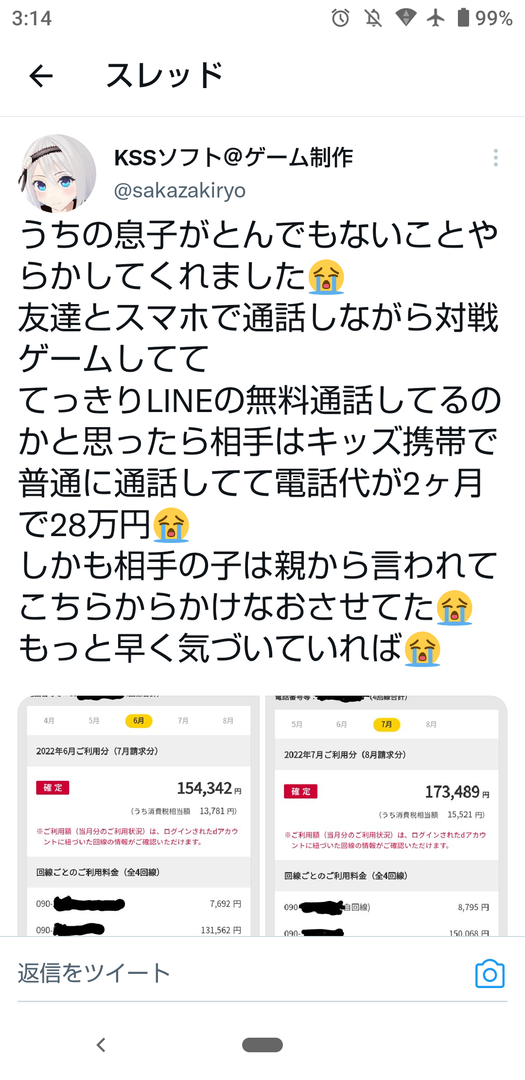まんさん「小学生の息子が友達でスマホしながらゲームやってました。2ヶ月で通話料28万円…」←