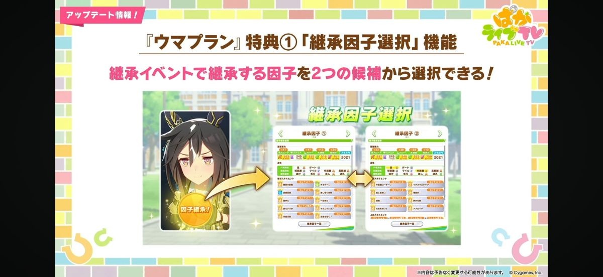 専用アイテムが必要になってきて、育成後はレースにも出せないけど、その分継承全振りの子が生み出せるってことかな