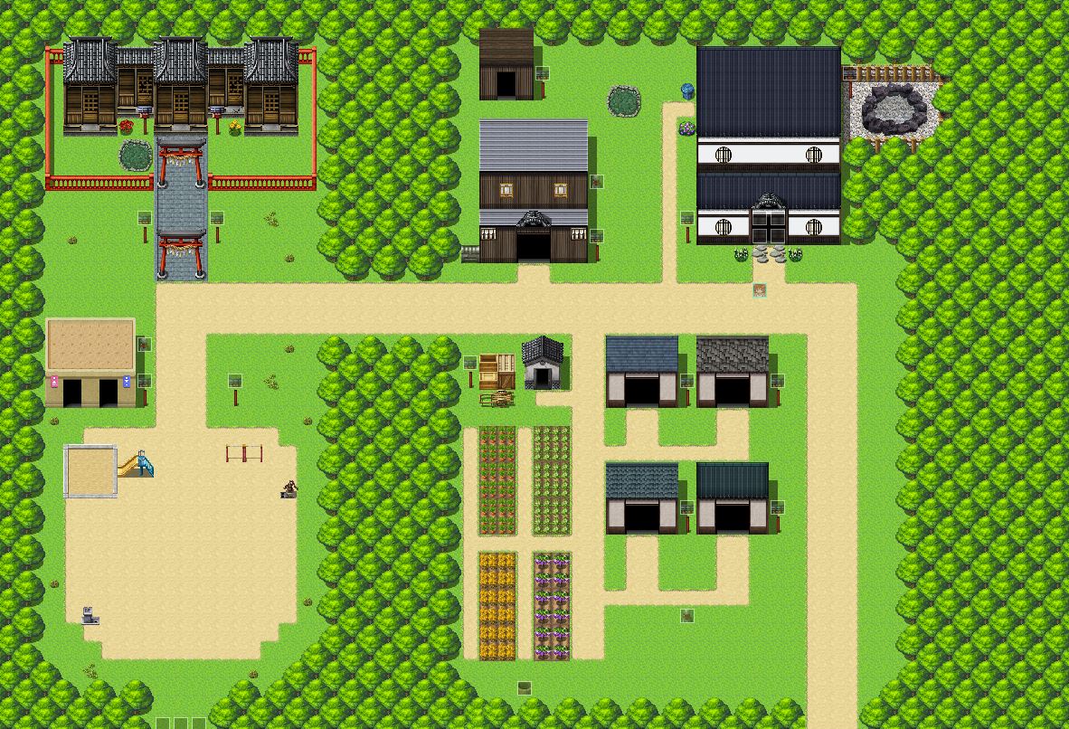 中だけで完結するなら神社は村の奥から行ける別マップにしたら