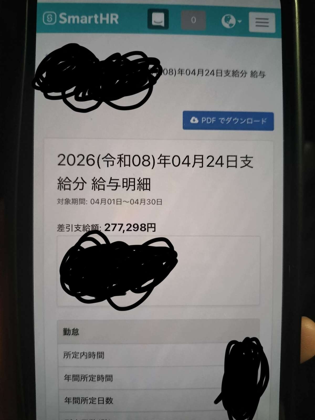 差引支給額が27万だった