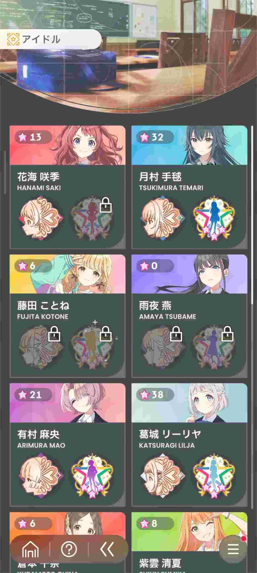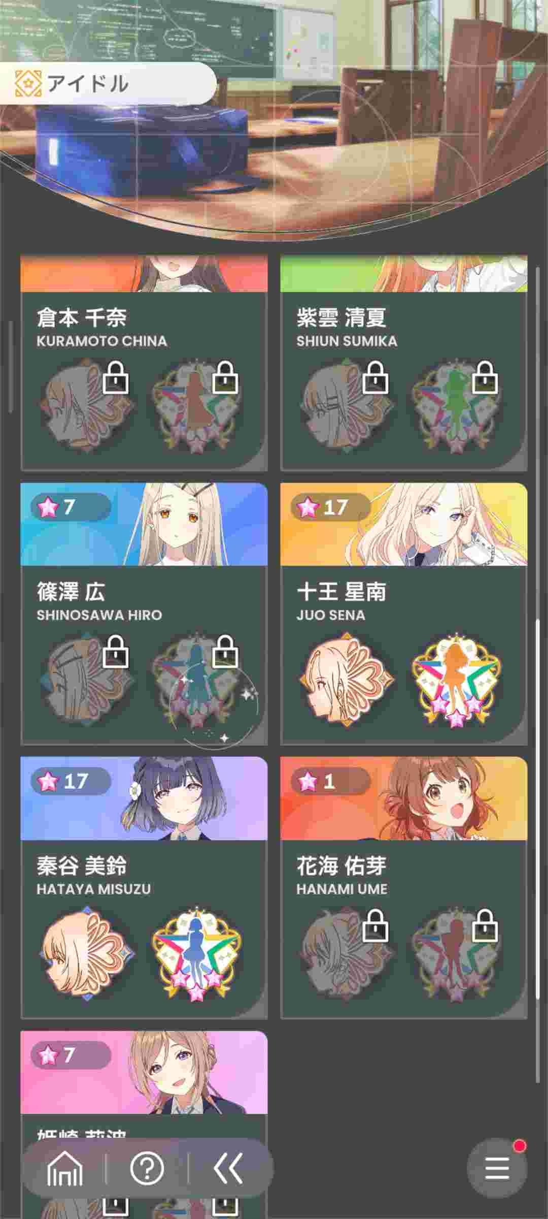 親愛度1~10が1章、11~20が2章、21~27が3章になっていて3章はまだ解禁されてないキャラもいる