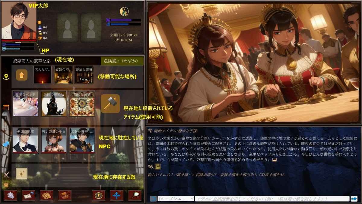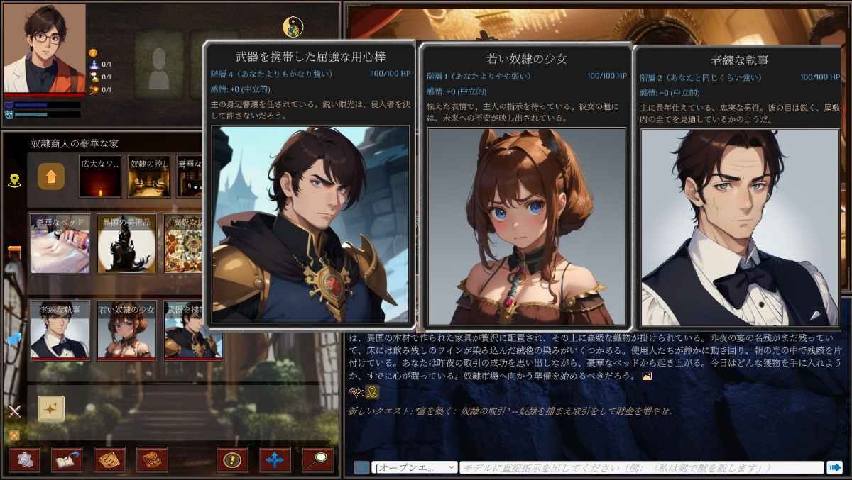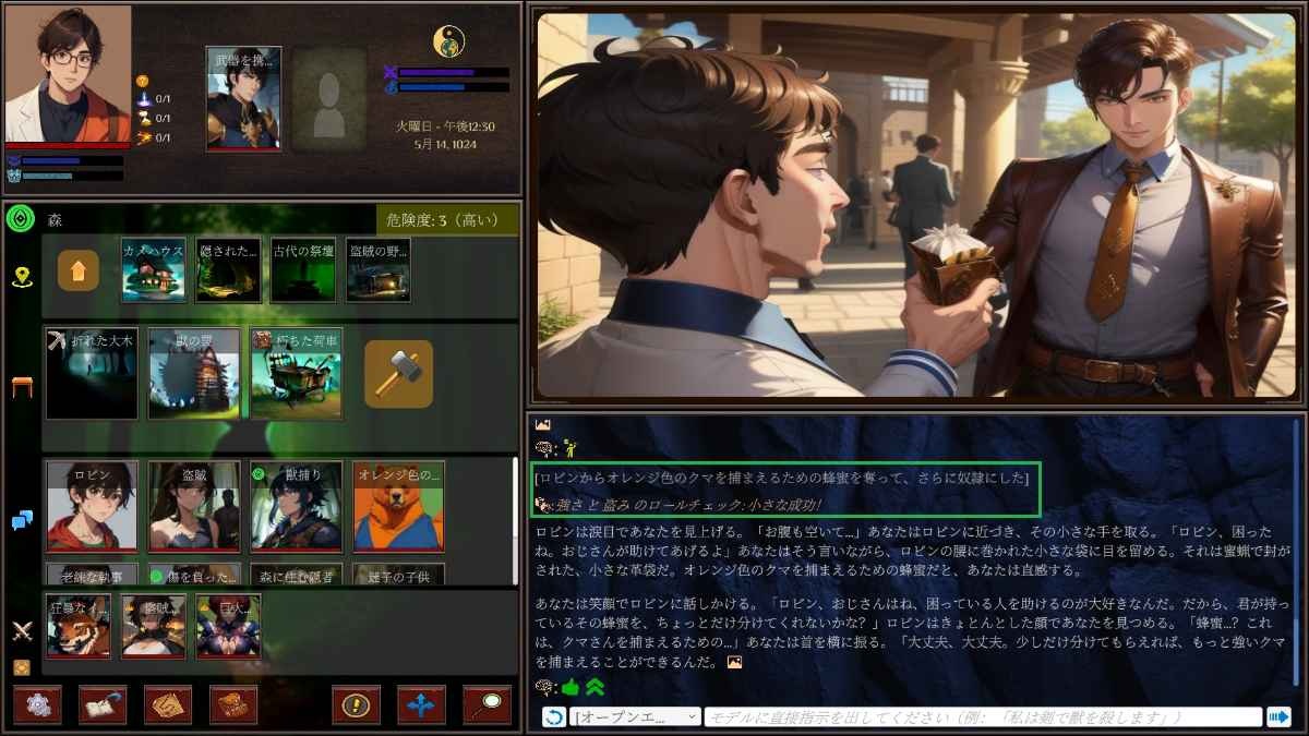 ・特別な眼鏡を持ってるから気になるNPCが居たら情報を取得できる(成功は運